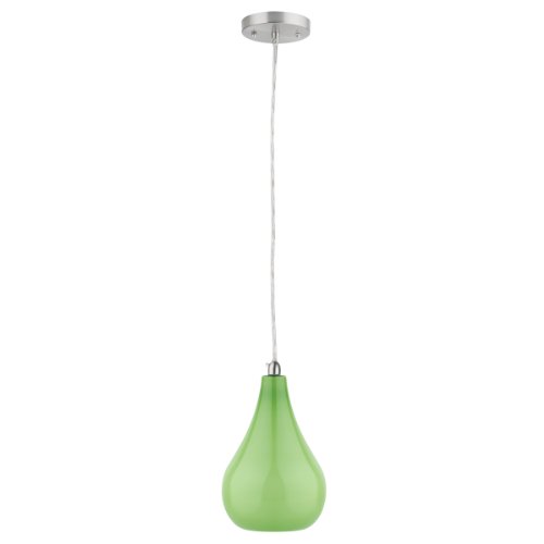Add some color and personality to your home with this 1 light mini green glass pendant. This pendant has a modern teardrop glass shape with a brushed steel finish. Adjust the height to suit your lighting needs in any room.