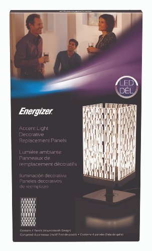Energizer decorative replacement panels for the Energizer Edge Medium Accent Light #HFEMPAC (available on amazon.com). Five stylish designs to choose from; Lasers, Houndstooth, Bubbles, Branches and Linen, that when inserted into the LED base illuminate and decorate instantly to change the look of your room.
