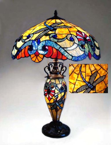 The Detailed Description of Chloe Lighting CH18B889-DT3 Tiffany-Style Dragonfly 3-Light Double Lit Table Lamp with 18-Inch ShadeFeatures