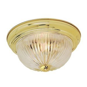 15-Inch polished brass flush dome with ribbed ice glass. (3) 60-Watt A19 medium base bulbs not included.